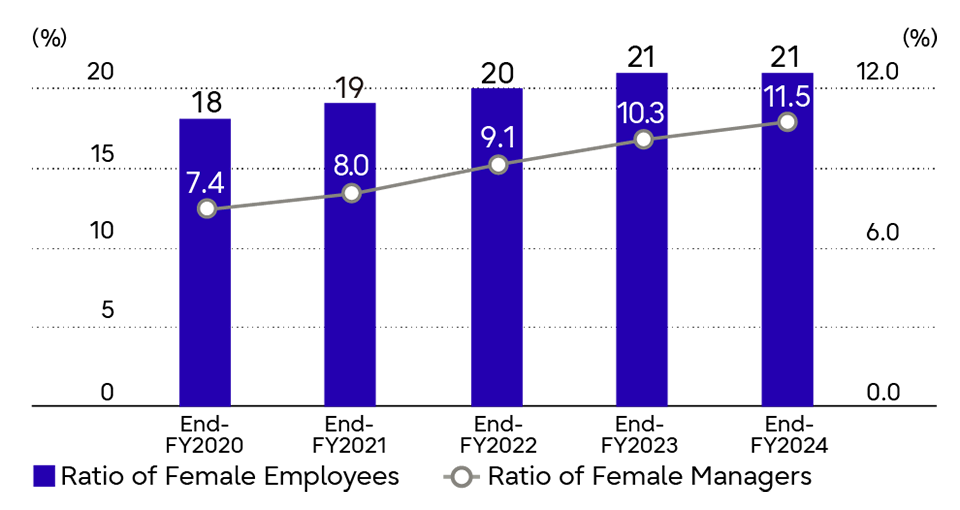 Das Büro hält regelmäßig Meetings mit allen regionalen Diversity Promotion Representatives ab, bei denen sie Informationen zu Problemen und Verfahren austauschen, die sie in jeder Region erlebt bzw. eingeführt haben, und Ideen für globale Fördermaßnahmen entwickeln. Alle Unternehmen der Gruppe in Japan müssen zudem einen Diversity Promotion Manager benennen. Diese Manager fördern Diversität in der Gruppe als Ganzes, indem sie in ihren Meetings Informationen untereinander austauschen, ihre Koordination stärken und dazu beitragen, Richtlinien zu standardisieren etc.