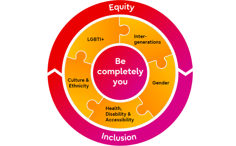 Wir haben das Global DE&I Vision & Inclusion Wheel eingeführt, um diese erweiterte Definition widerzuspiegeln. Es fungiert als Orientierungshilfe und unterstützt uns, weitere Fortschritte im Rahmen unserer Maßnahmen für mehr Inklusion und Diversität innerhalb unserer Belegschaft zu machen.
