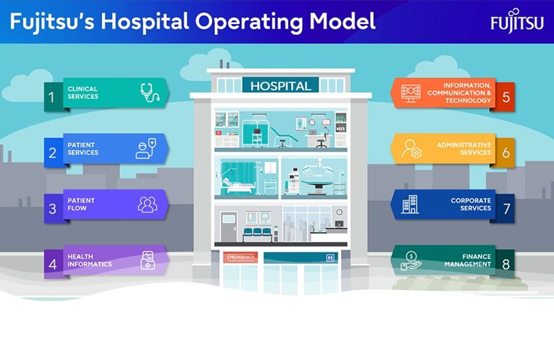 Operating models link the organisational strategy to the operational capabilities and dictate where work gets done by providing a guide for organising and using resources. Fujitsu's hospital operating model reflects the evolving healthcare landscape where patient-centredness, optimisation and efficiency, data-driven approaches, as well as technology are at the forefront of hospital capabilities.