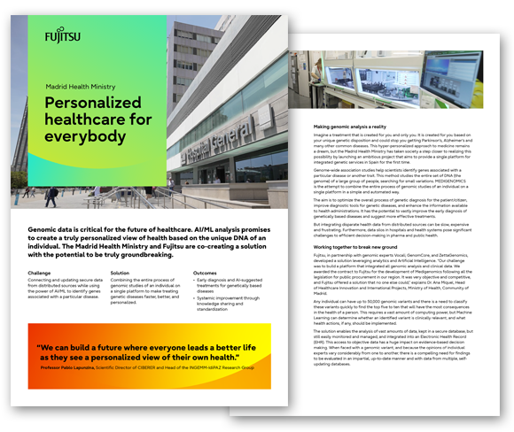 Genomic data is critical for the future of healthcare. AI/ML analysis promises to create a truly personalized view of health based on the unique DNA of an individual. The Madrid Health Ministry and Fujitsu are co-creating a solution