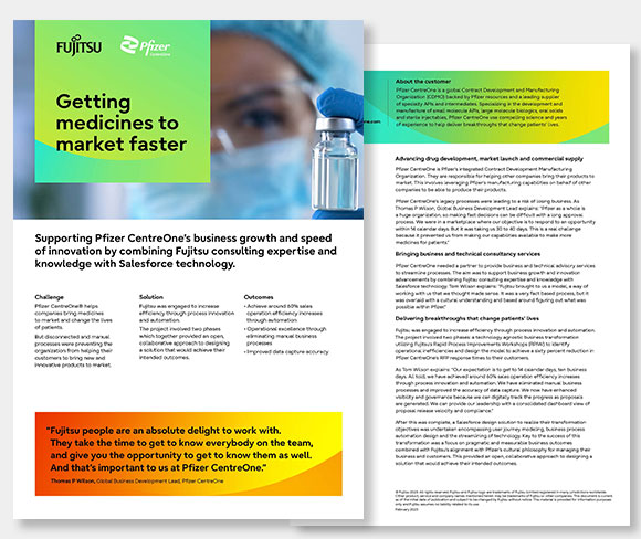 Supporting Pfizer CentreOne’s business growth and speed of innovation by combining Fujitsu consulting expertise and knowledge with Salesforce technology.