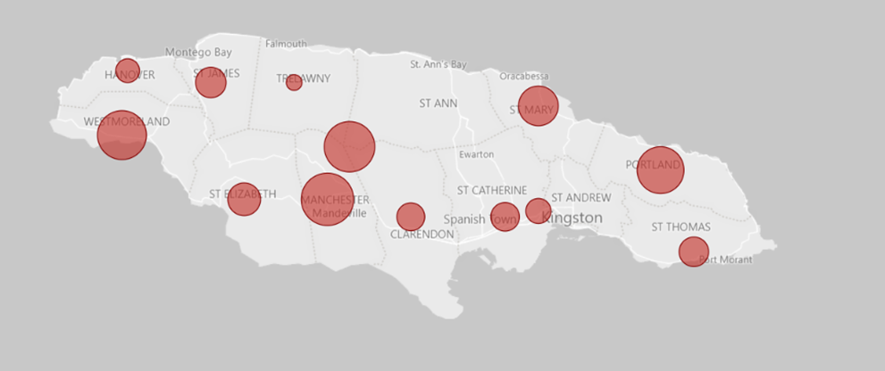 The cheapest produce are found within the parishes of St. Andrew, Hanover and Trelawny with an average price of $199 JMD, $198 JMD and $193 JMD per KG/ lb respectively. The top 5 least expensive products from these three parishes including their average prices are green banana ($185.83 JMD), plantain ($191.80 JMD), pineapple ($203.67 JMD), sorrel ($217.25 JMD) and papaya ($229.12 JMD). In any event Trelawny based on average price of products suggest that the parish would be any consumer or brick and mortar business best bet to purchase agricultural products at an affordable price.