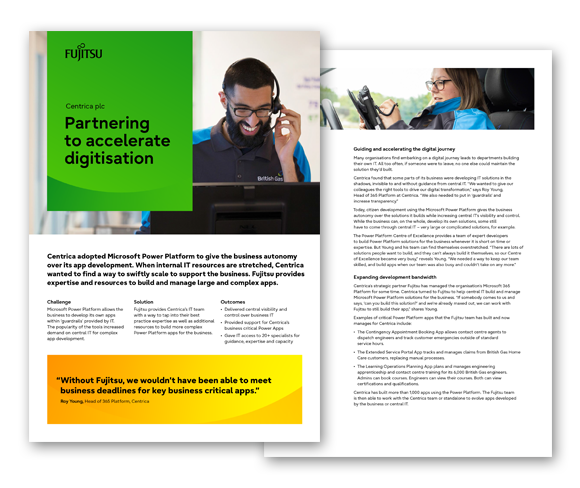 Centrica adopted Microsoft Power Platform to give the business autonomy over its app development. When internal IT resources are stretched, Centrica wanted to find a way to swiftly scale to support the business. Fujitsu provides expertise and resources to build and manage large and complex apps.