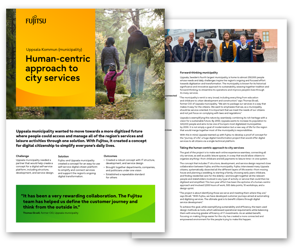 - Fujitsu and Uppsala municipality created a concept for an easy-to-use self-service digital citizen platform to simplify and connect services and support the region’s ongoing digital transformation.