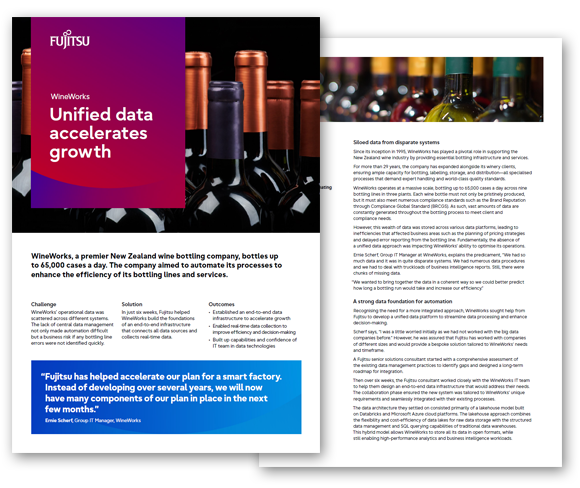 In just six weeks, Fujitsu helped WineWorks build the foundations of an end-to-end infrastructure that connects all data sources and collects real-time data.
