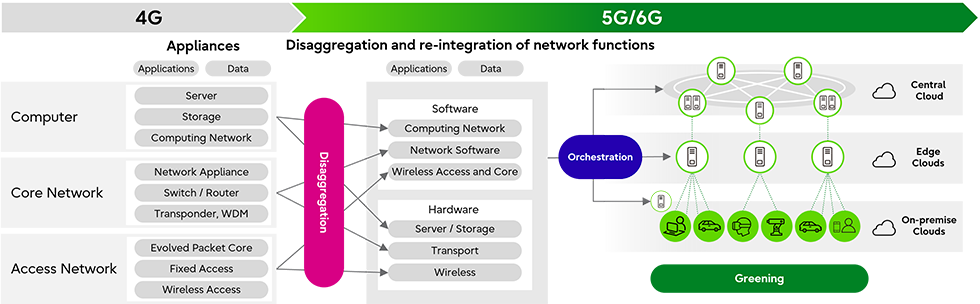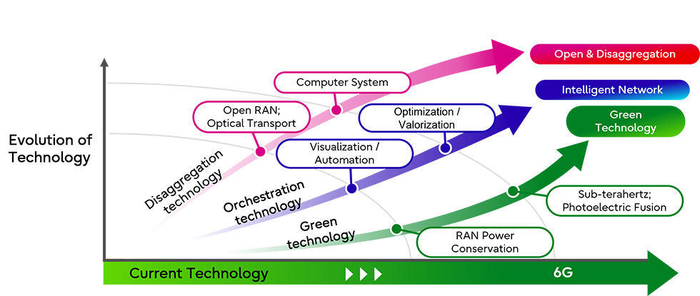 Network in the 6G era that support the Digital Future Society needs to realize low power consumption, flexibility, and high reliability by using the evolving technologies such as of "Open & Disaggregation" "Intelligent network" and "Green technology".