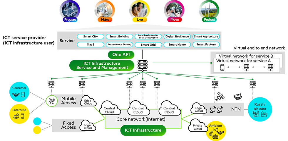 The network architecture based on disaggregation, orchestration, and green technology will support ICT services in the Digitalized Future Society.