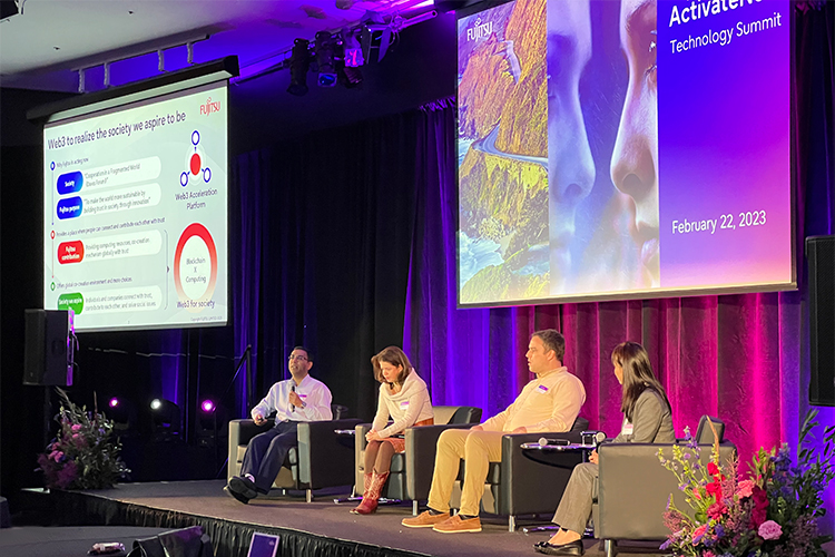 Indradeep Ghosh, CEO of Fujitsu Research of America, described the "Fujitsu Web3 Acceleration Platform" developed by the company. "Fujitsu Web3 Acceleration Platform" is designed to accelerate the transition to a trustworthy digital ecosystem by co-creating trust, blockchain, and computing capabilities as a service (CaaS) for free to partner companies.