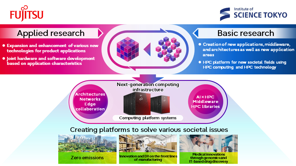 Institute of Science Tokyo has been operating TSUBAME systems and also conducting various research on architecture, middleware, and applications. Utilizing this research, Institute of Science Tokyo will propose how to enhance the performance and reduce the power of the future computing system. In addition, Institute of Science Tokyo is working with various companies to accelerate social innovation. In conjunction with this effort, Institute of Science Tokyo will also accelerate these social innovations using future computing systems with Fujitsu.