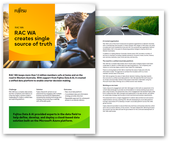 RAC WA keeps more than 1.2 million members safe at home and on the road in Western Australia. With support from Fujitsu Data & AI, it created a unified data platform to enable smarter decision-making.