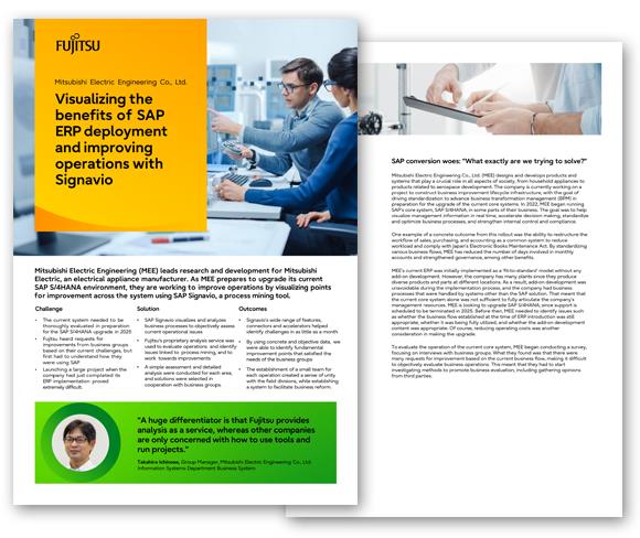 MEE and Fujitsu will continue to collaborate on reforming their operations, with Ichinose commenting, “The results obtained from Signavio will be shared with each department, and we plan to develop a system to carry out business reforms through in-depth analysis of each process based on KPIs. We would like to see these activities take root as part of the company's lifecycle, and we are looking forward to Fujitsu’s continued support to make it happen."
