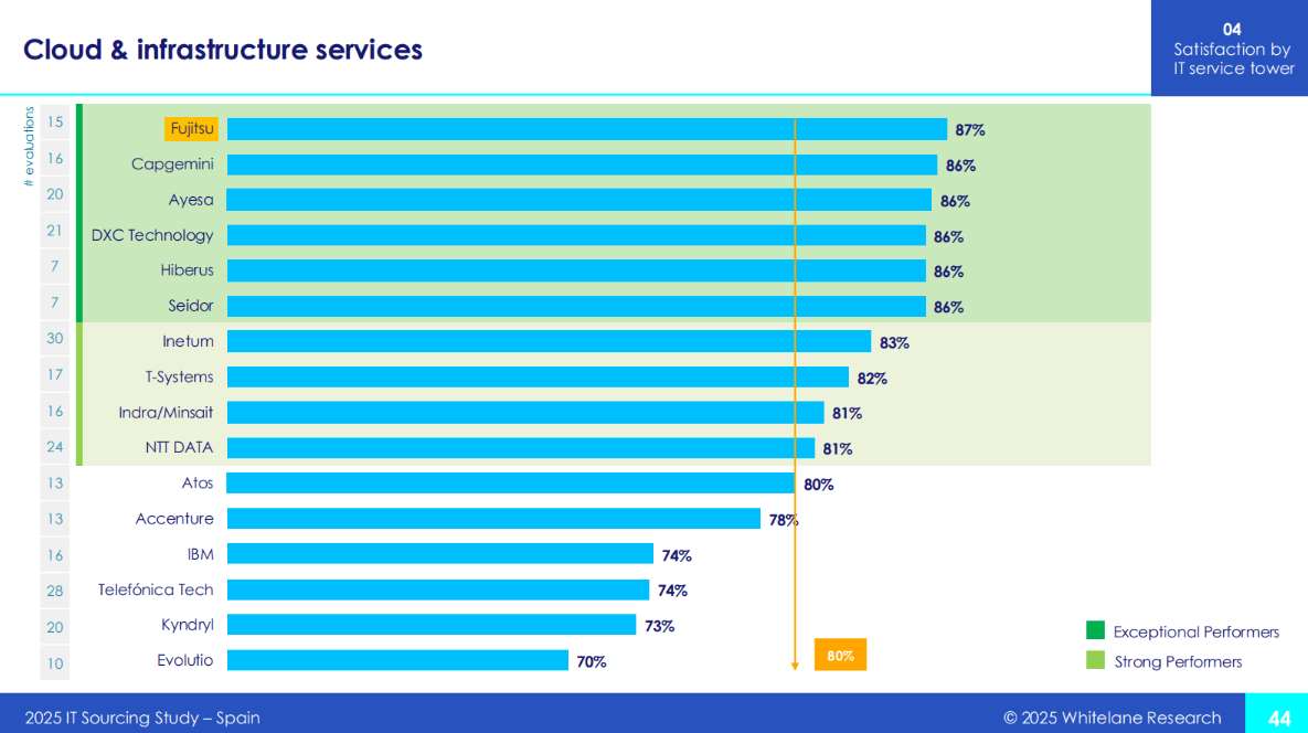 La compañía alcanza el Top 2 en satisfacción general (empresas globales), con un 86%, superando en 7 puntos la media del mercado. Este resultado refleja el compromiso de Fujitsu con la excelencia en el servicio, la innovación tecnológica y la cercanía con sus clientes.