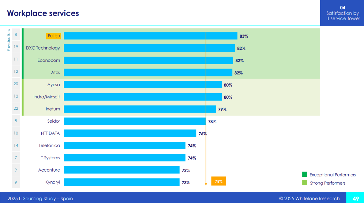 Fujitsu España se consolida como líder absoluto en el mercado de servicios tecnológicos, obteniendo por quinto año consecutivo la clasificación de “Exceptional Performer” en el estudio de Whitelane Research y Eraneos.