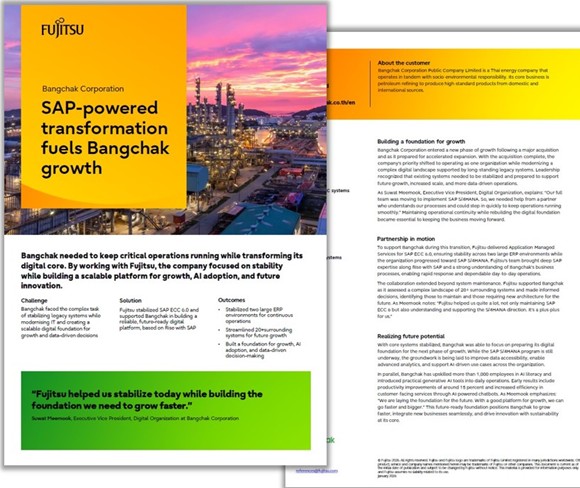 Fujitsu stabilised SAP ECC 6.0 and supported Bangchak in building a reliable, future-ready digital platform, based on Rise with SAP.