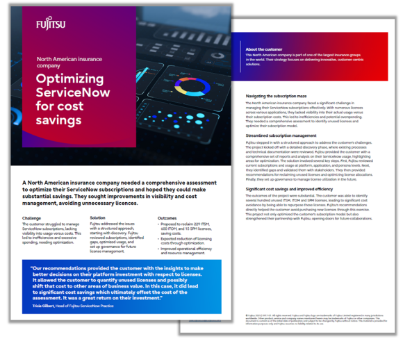 The outcomes of the project were substantial. The customer was able to identify several hundred unused ITSM, ITOM and SPM licenses, leading to significant cost avoidance by being able to repurpose those licenses. Fujitsu’s recommendations directly helped the customer avoid purchasing new licenses through this exercise. This project not only optimized the customer’s subscription model but also strengthened their partnership with Fujitsu, opening doors for future collaborations.