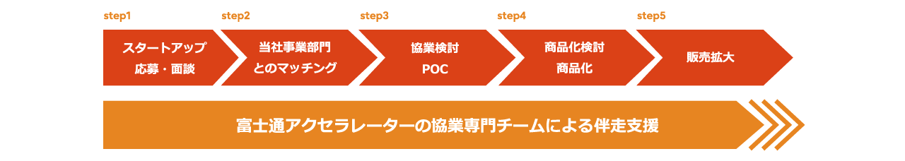 富士通アクセラレーターに参加するスタートアップ企業と当社の事業部門が短期集中で協業検討・商品化を行い、市場への早期投入をめざします