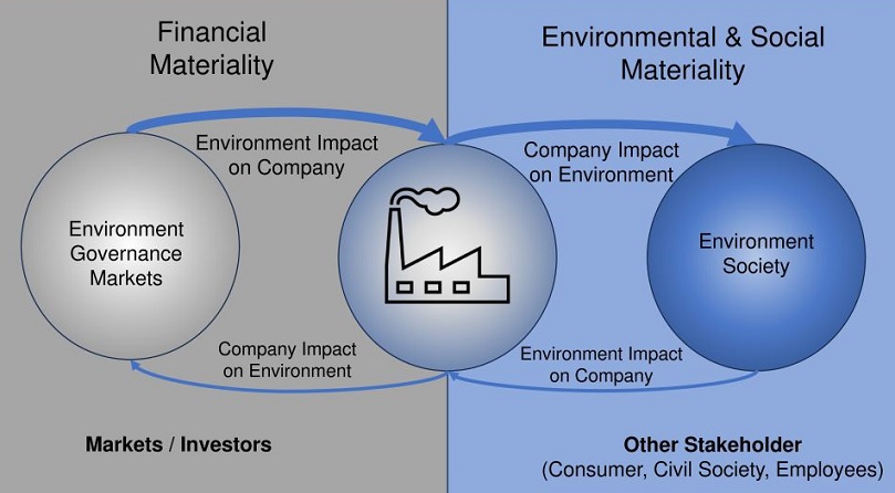 ダブルマテリアリティの影響はますます大きくなりますが、主な経路が財務報告の強化によるものか、追加の非財務報告要件によるものかはまだ明らかではありません。図に示すように、ダブルマテリアリティは右側の追加目標になっただけでなく、気候変動や炭素税などの政府規制が事業運営にますます影響を与えていること、そして環境パフォーマンスの改善が企業の長期的な評価に大きなプラスの影響を与える可能性があることから、左側の財務報告の一部にもなっています。