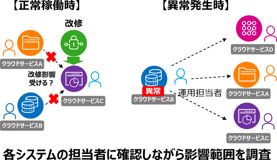 その結果、影響範囲調査が長期化し、障害復旧の遅延により顧客満足度の低下につながる可能性があります。