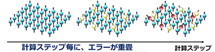 前述したように、量子ビットは周囲の熱など様々な要素の影響を受け、エラーを起こしてしまします。このため、長いステップの計算を行うとエラーが蓄積し、正しい計算をすることができません。