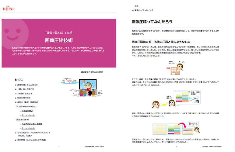 私たちのまわりには、たくさんのデジタルの画像や動画があふれていますよね。これらを手軽に保存したり、インターネットで送ったりするためには、「画像をギュッと小さくする技術(画像圧縮技術)」がとっても大切になってきています。この記事では、まずこの画像圧縮がどんなものなのかをわかりやすくお話しして、静止画と動画、それぞれの容量を小さくする方法をご紹介していきます。 2016年6月1日更新