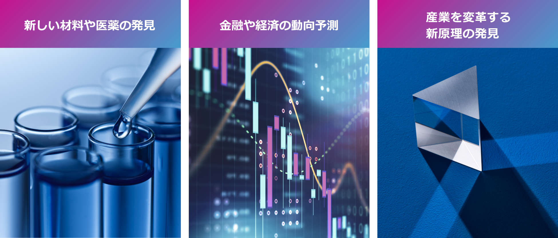 量子コンピュータは、従来のコンピュータでは計算が困難だった複雑な問題を高速に処理します。これにより、新材料開発や創薬、金融予測など、多岐にわたる分野で革新的な発見や課題解決を可能にします。これまで不可能だった計算が、新たな価値創造を加速します。