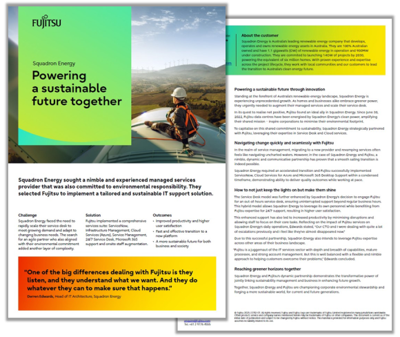 To capitalise on this shared commitment to sustainability, Squadron Energy strategically partnered with Fujitsu, leveraging their expertise in Service Desk and Cloud services.