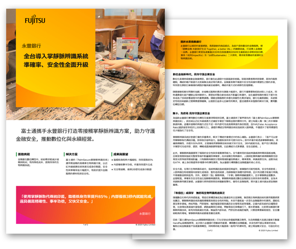 富士通攜手永豐銀行打造零接觸掌靜脈辨識方案,助力守護金融安全,推動數位化與永續經營。