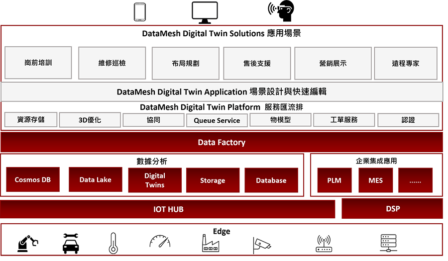 同時,可透過虛擬實境(AR)與混和實境(MR)進行設備維運及員工培訓。協助企業在後疫情時代,實現與工廠現場與管理層面的全面優化。